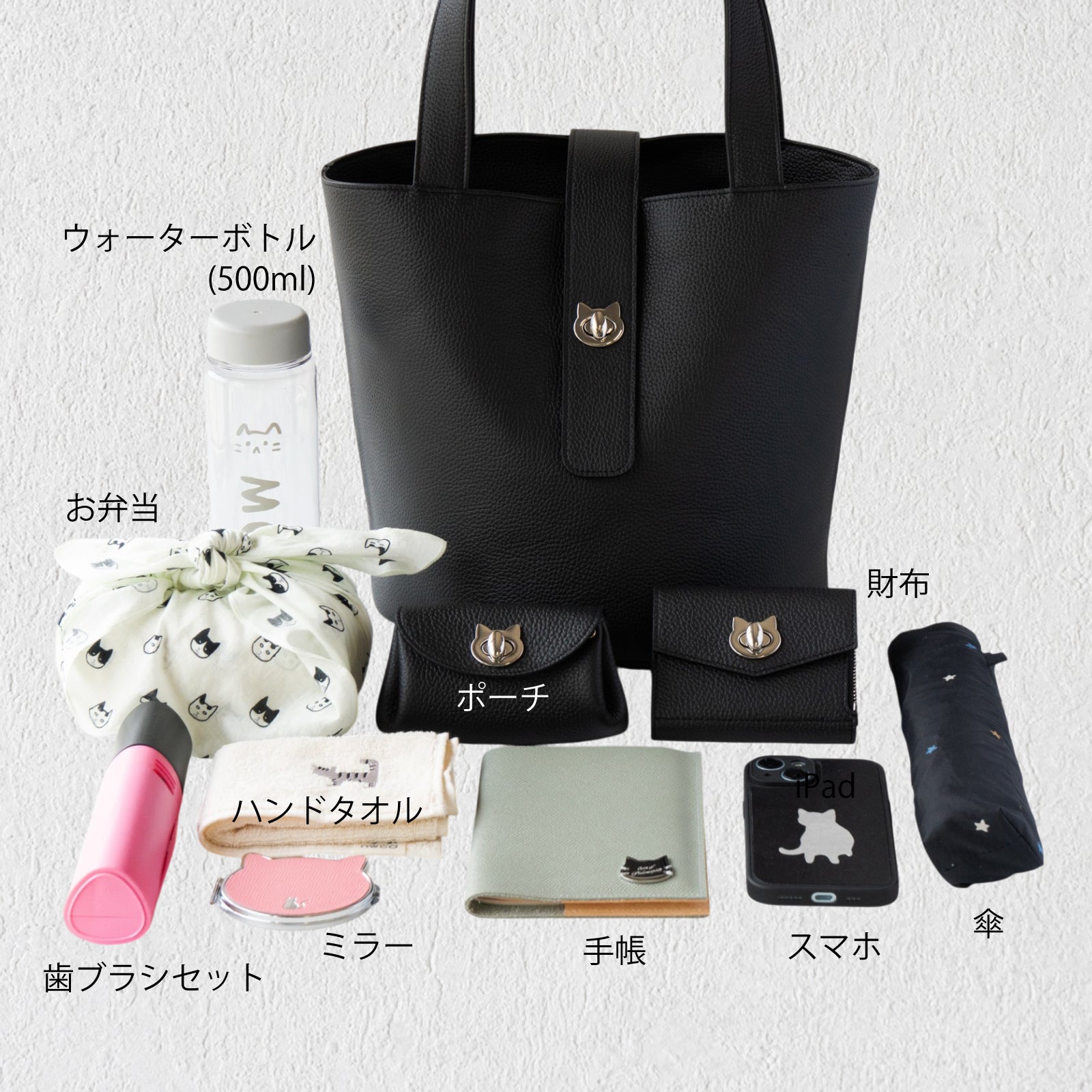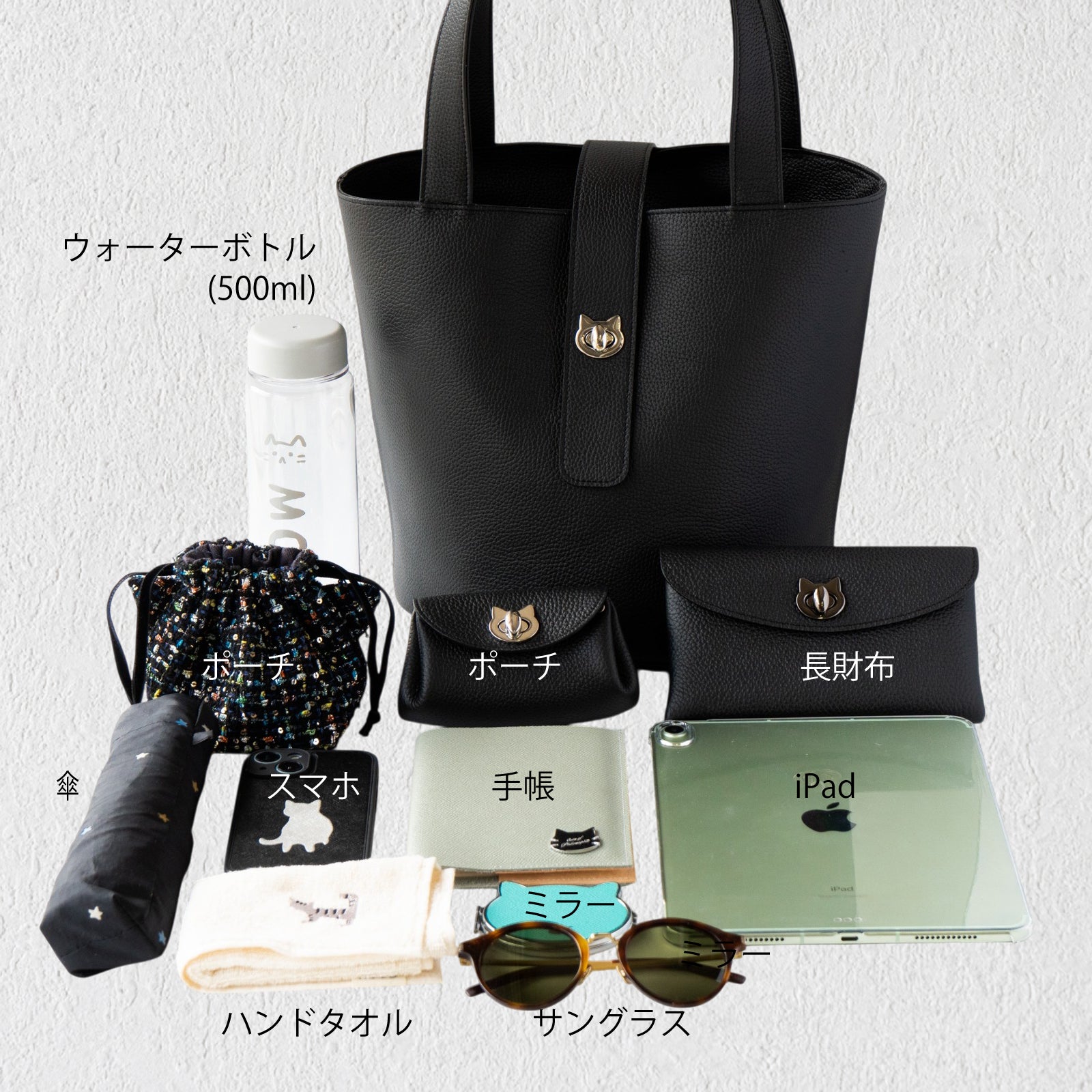肉球底やねこ金具など猫愛がつまった、毎日持ち歩きたくなる猫好きさんのためのビッグサイズバッグです。