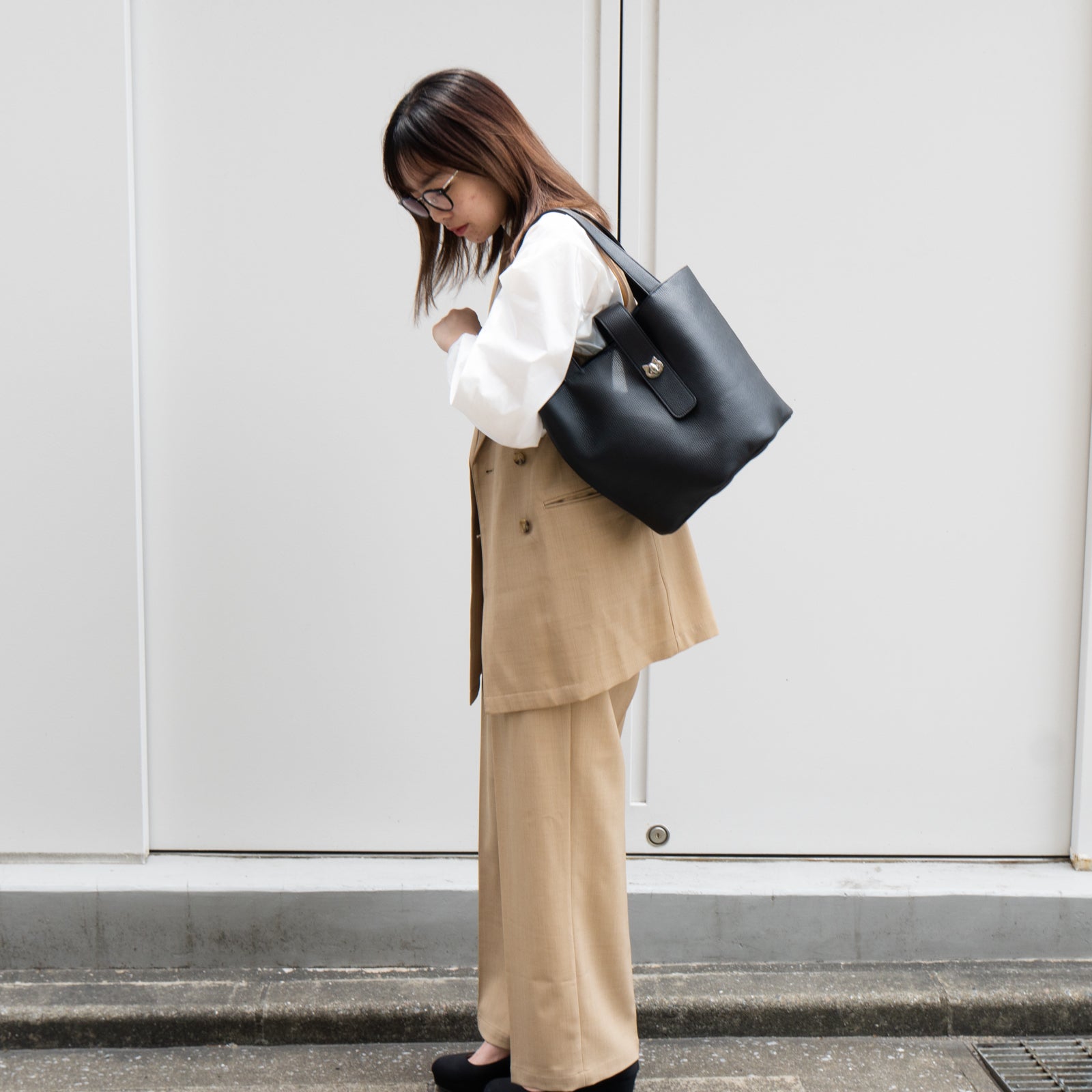 長財布やスマホなどの必需品はもちろん、ポーチは2つほど、500mlのペットボトルや折りたたみ傘、手帳やiPadまで入れても、まだゆとりのある超大容量!