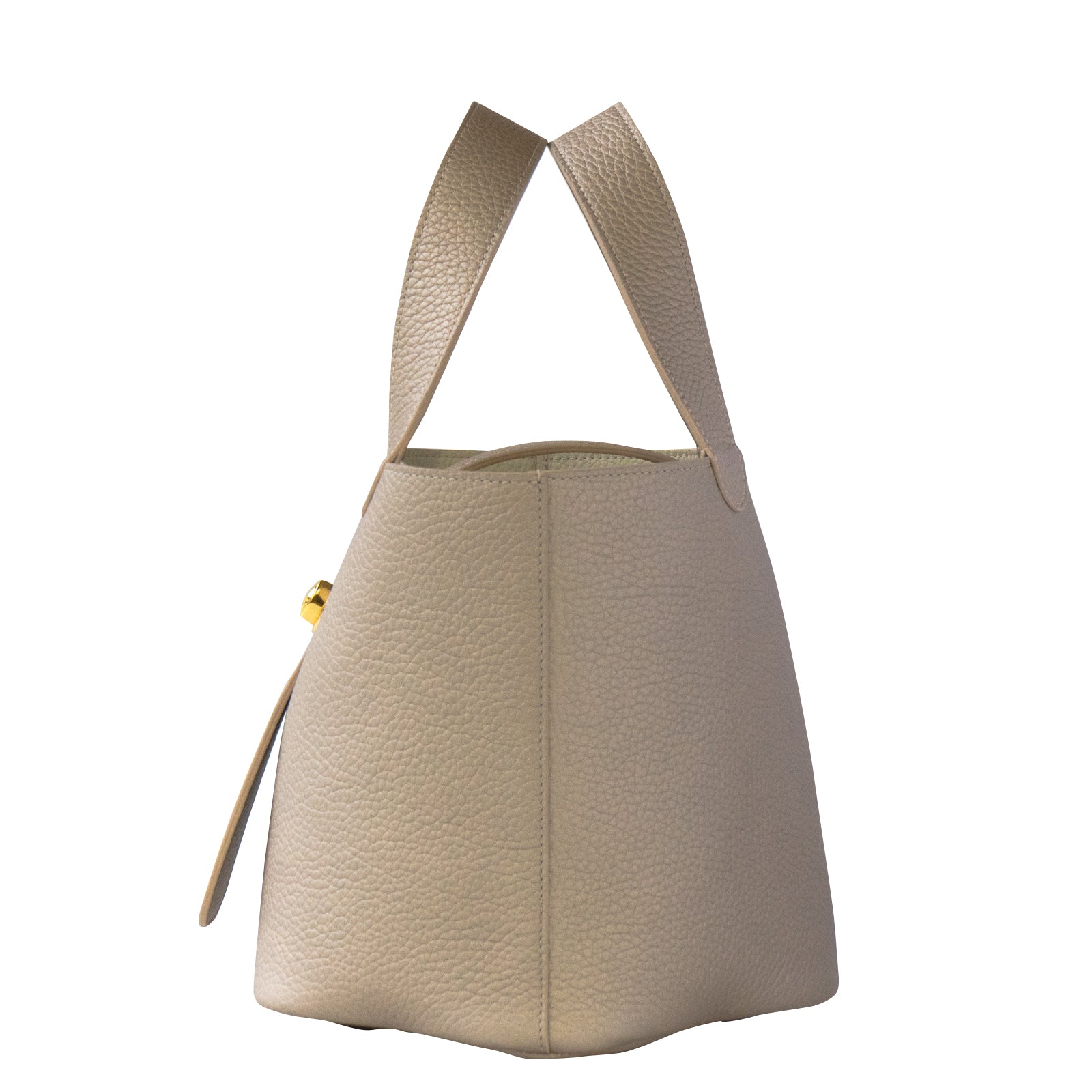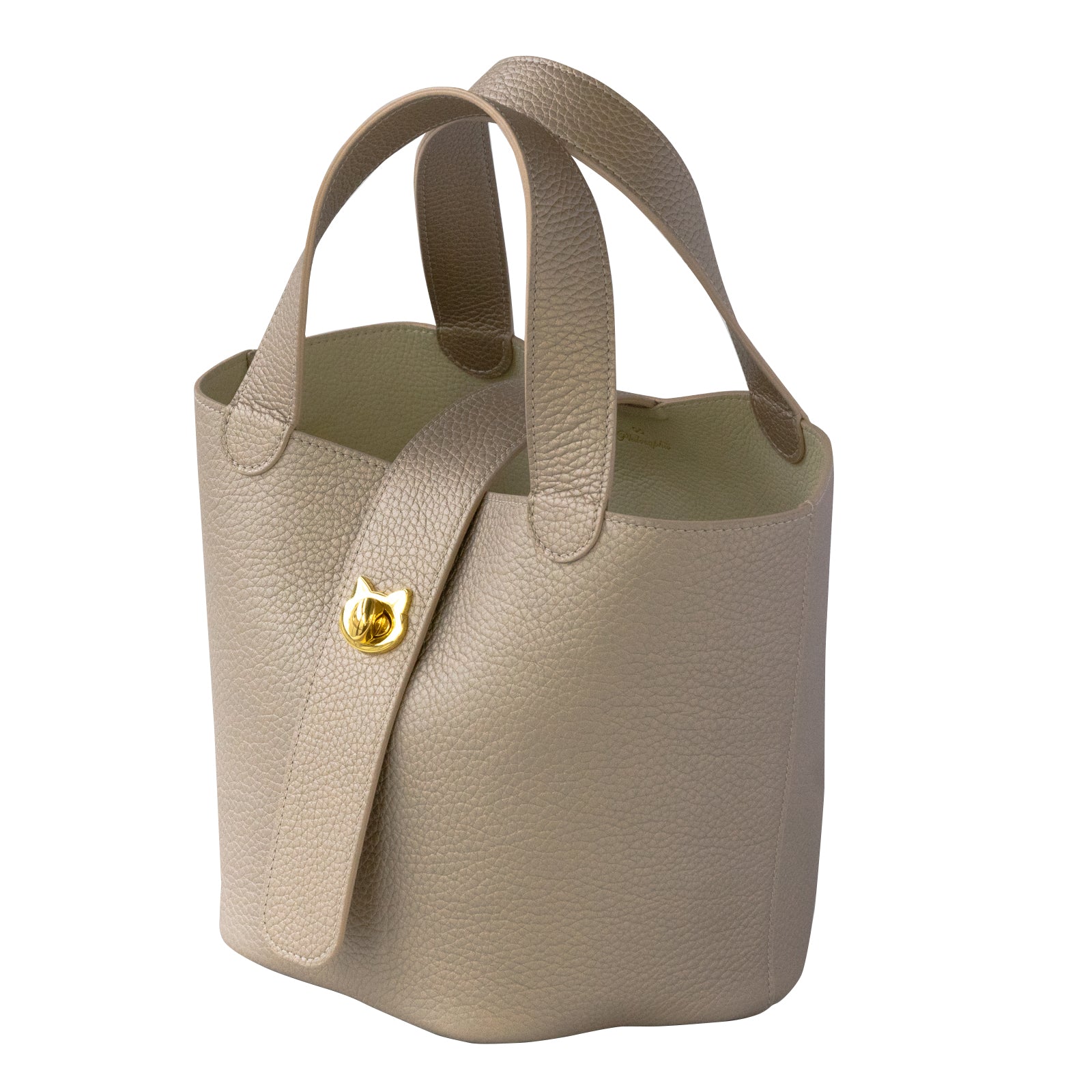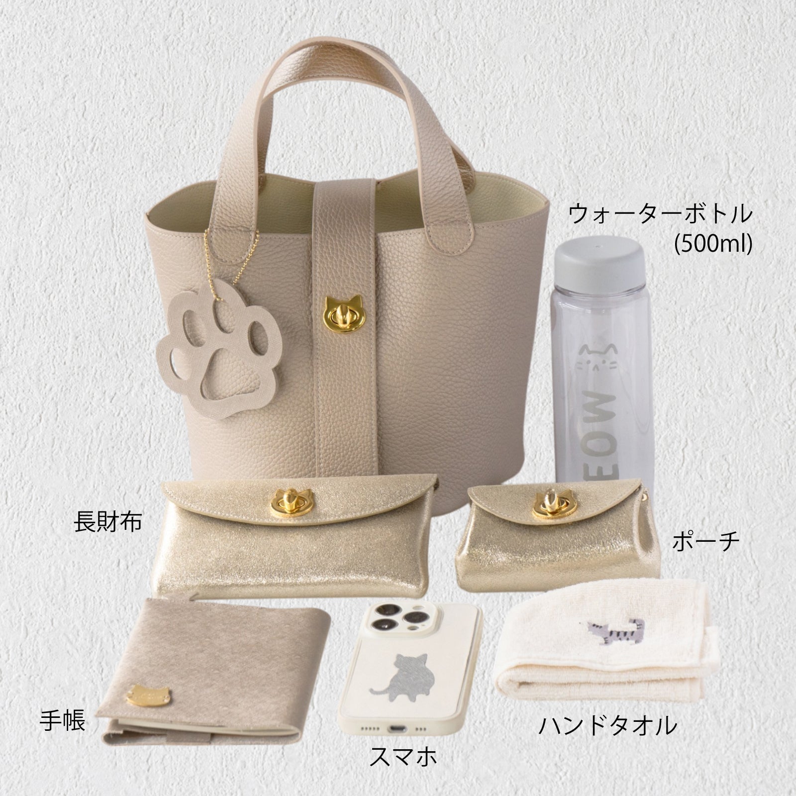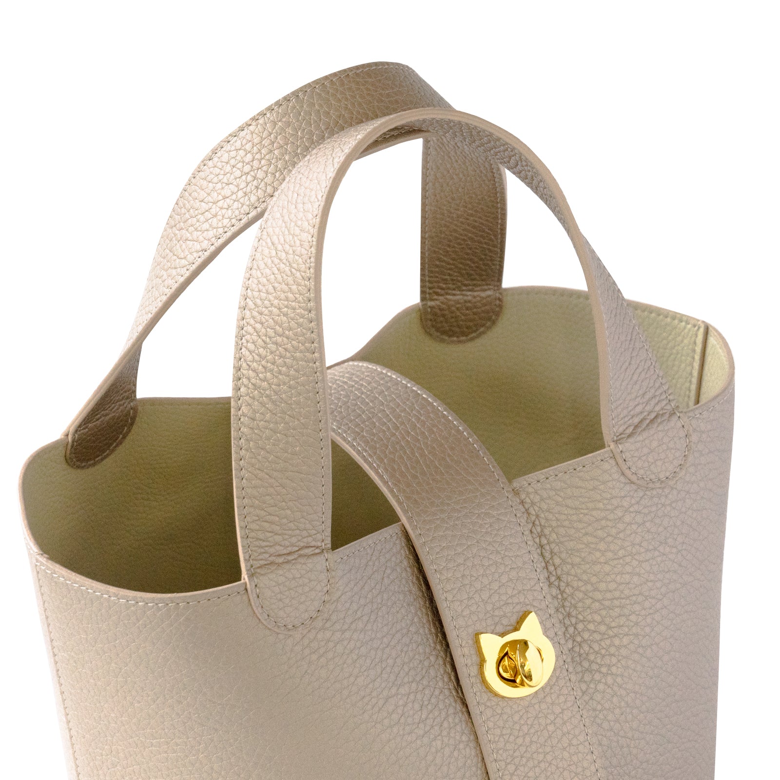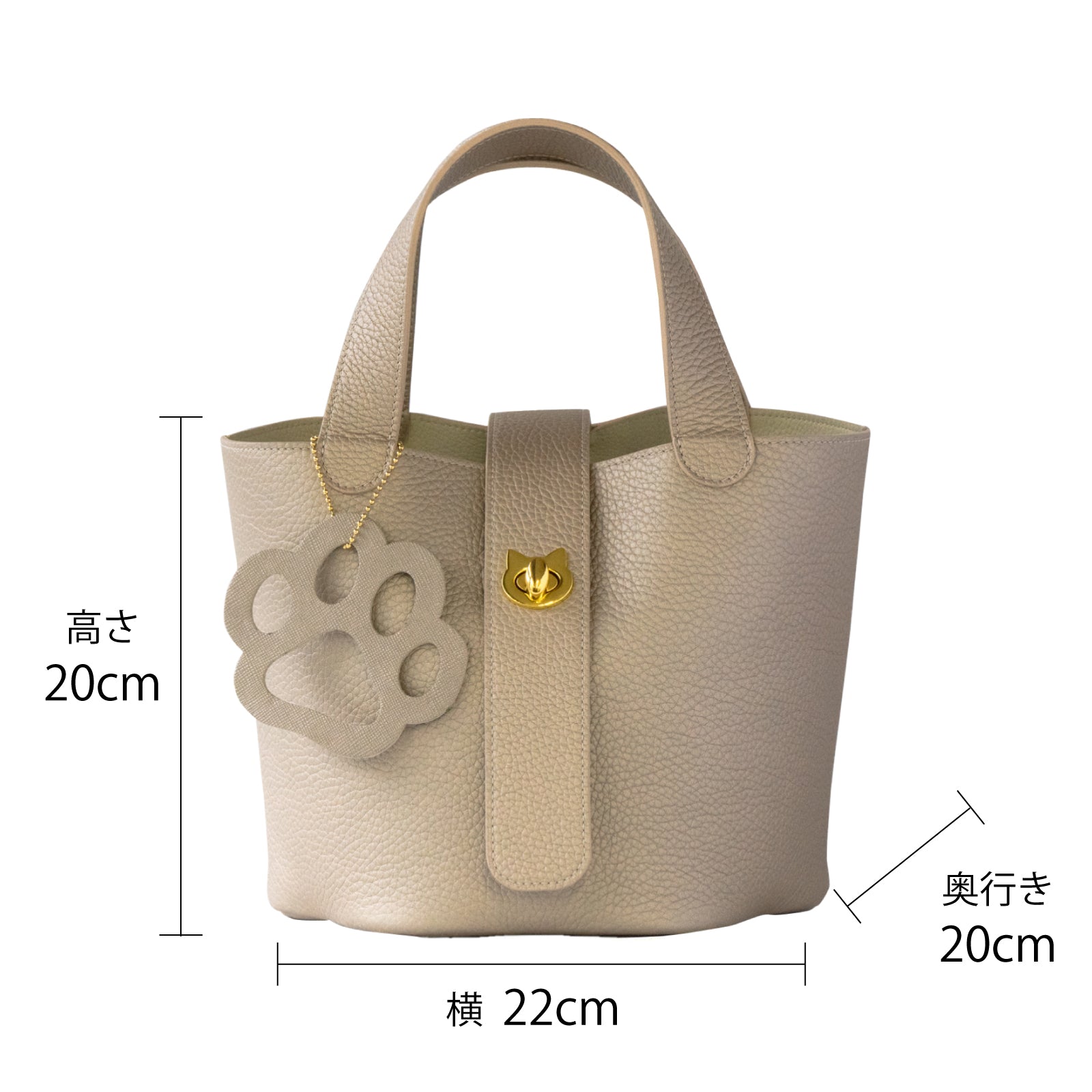底に最大のねこポイントが隠された、シンプルなバケツ型ハンドバッグ。