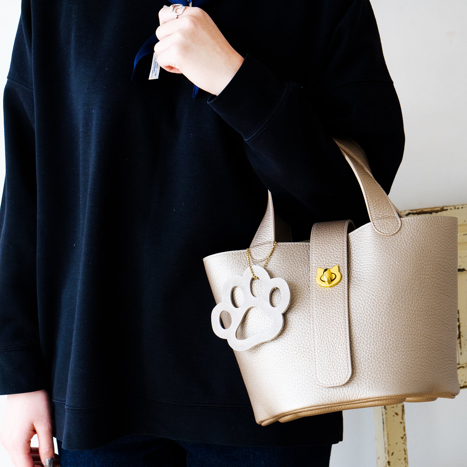 底全面が立体的な肉球型になった、猫好きさんにぴッたりの遊び心あるバゲットバッグ。