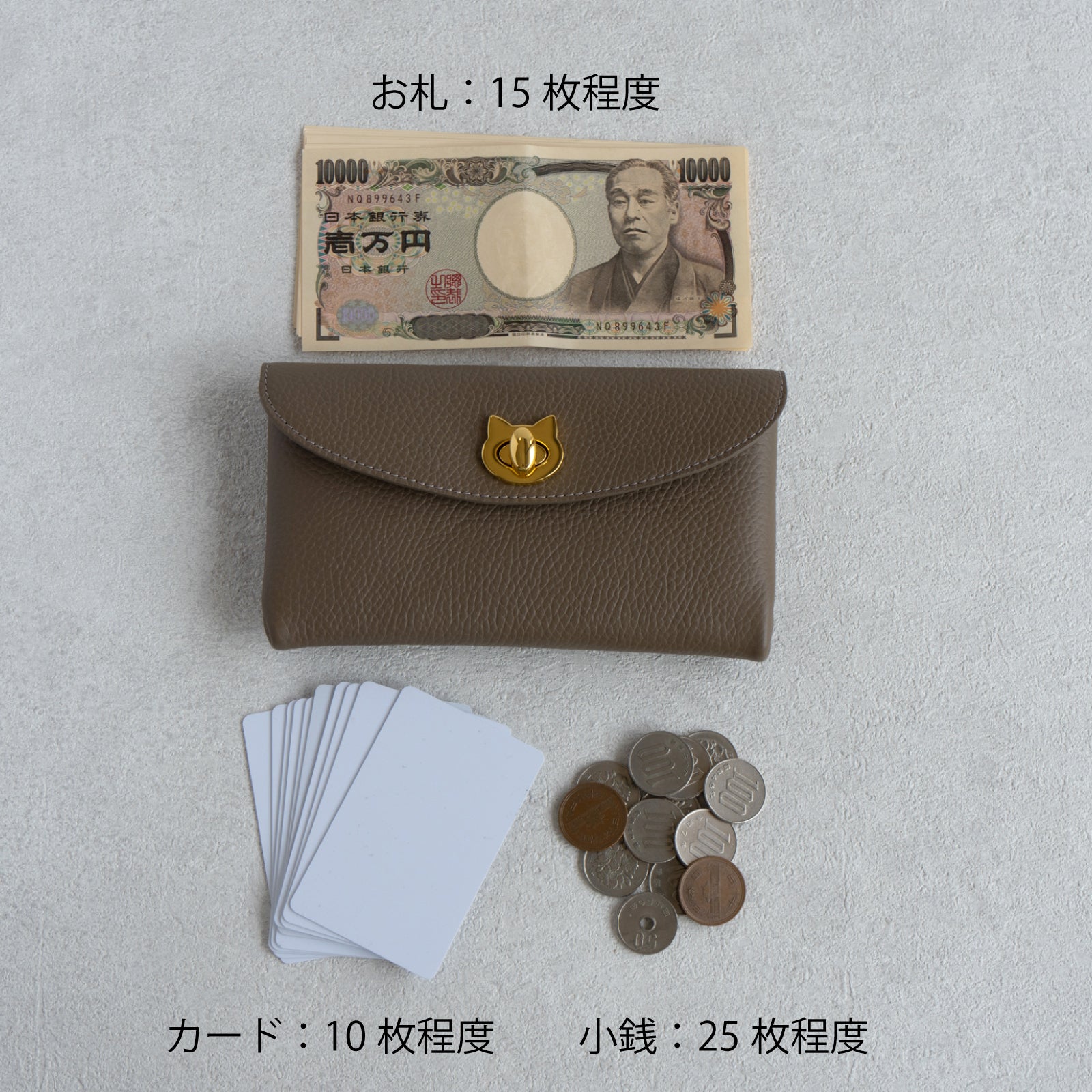 猫金具の存在感が素敵な、猫好きさんにピッタリのお財布です。