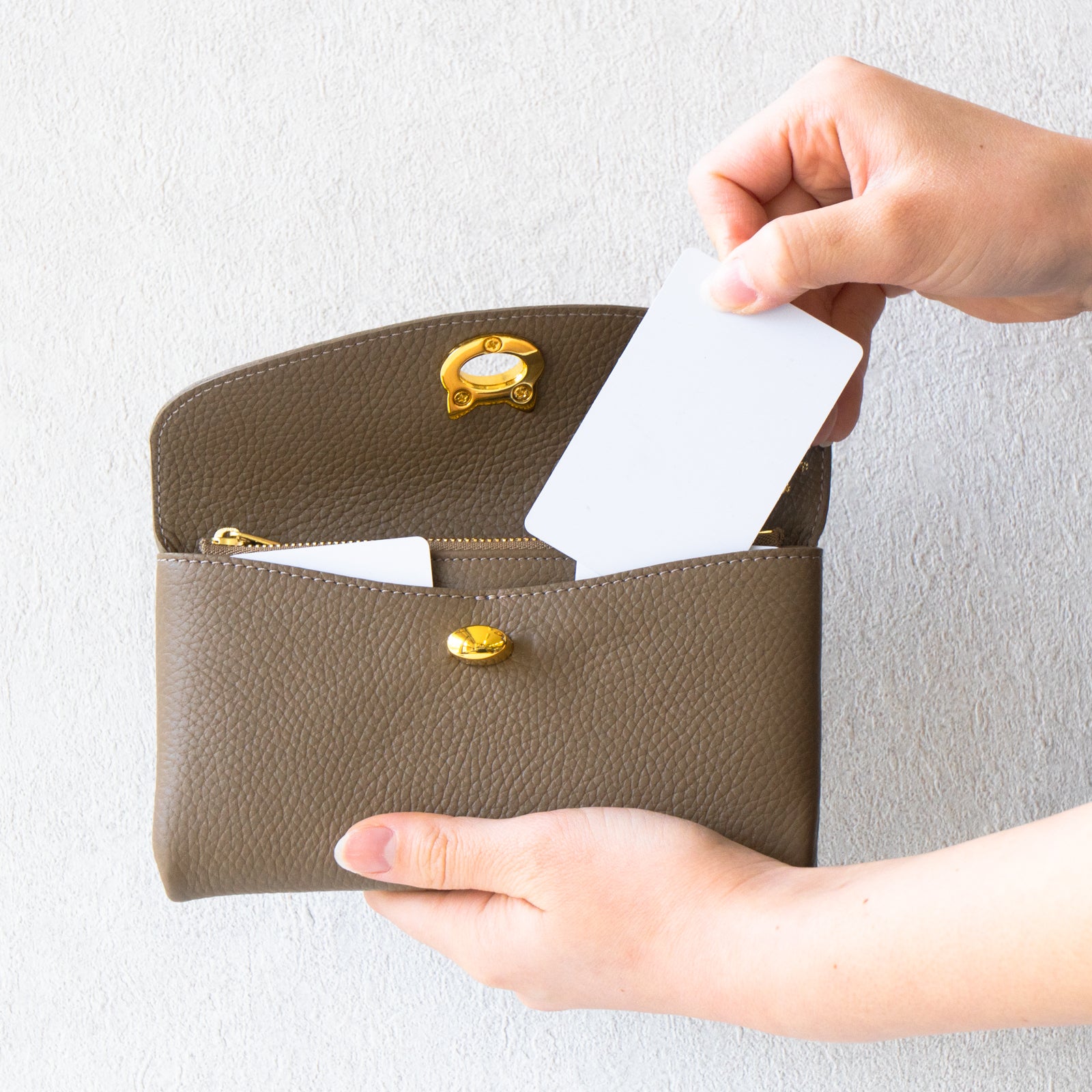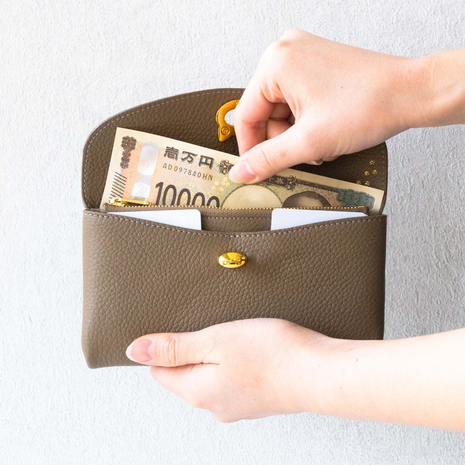長財布としては最小限のサイズで、小さめのバッグにも収まりやすいサイズ感。