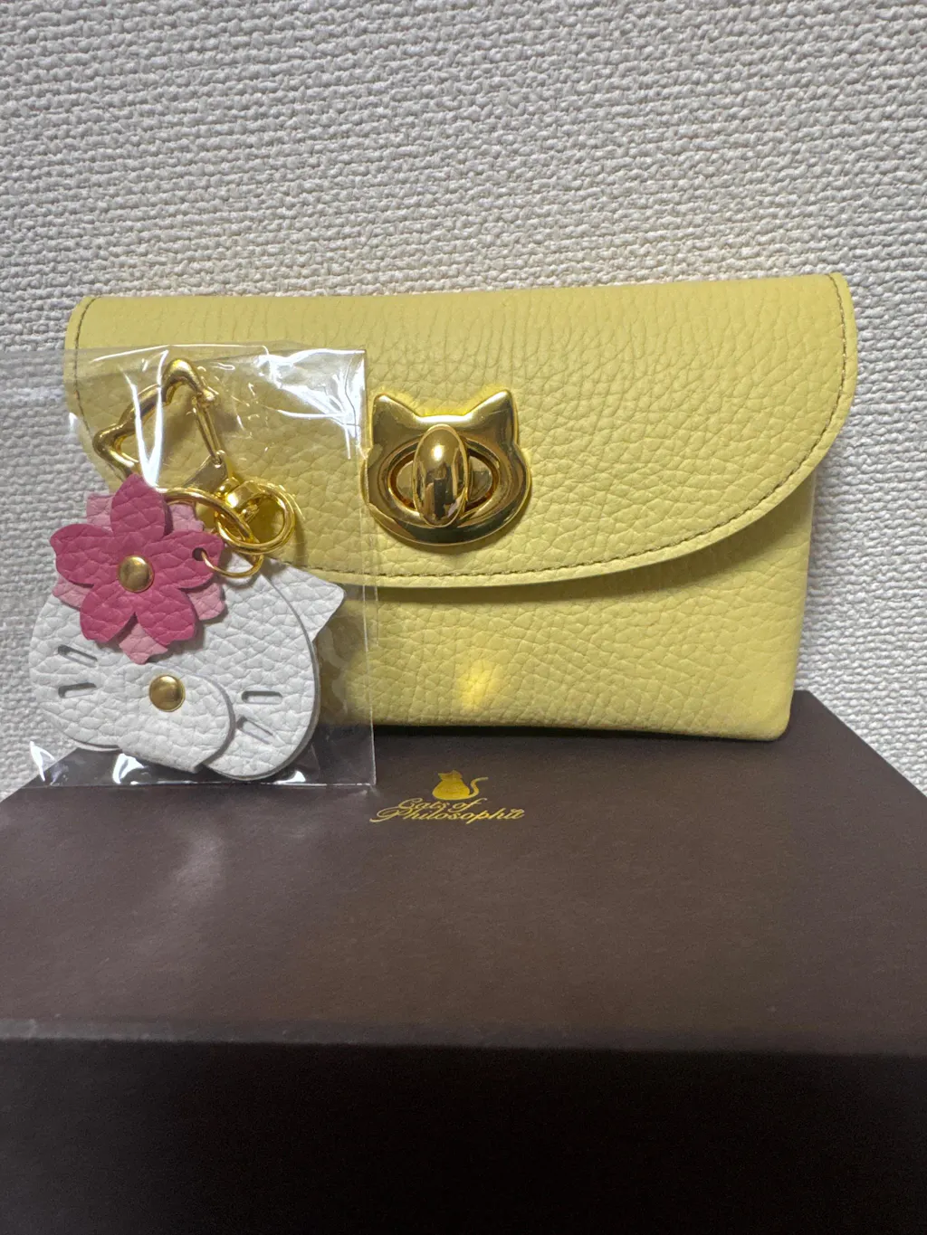 ラウンドしたフラップにねこの顔型金具が光ります。
