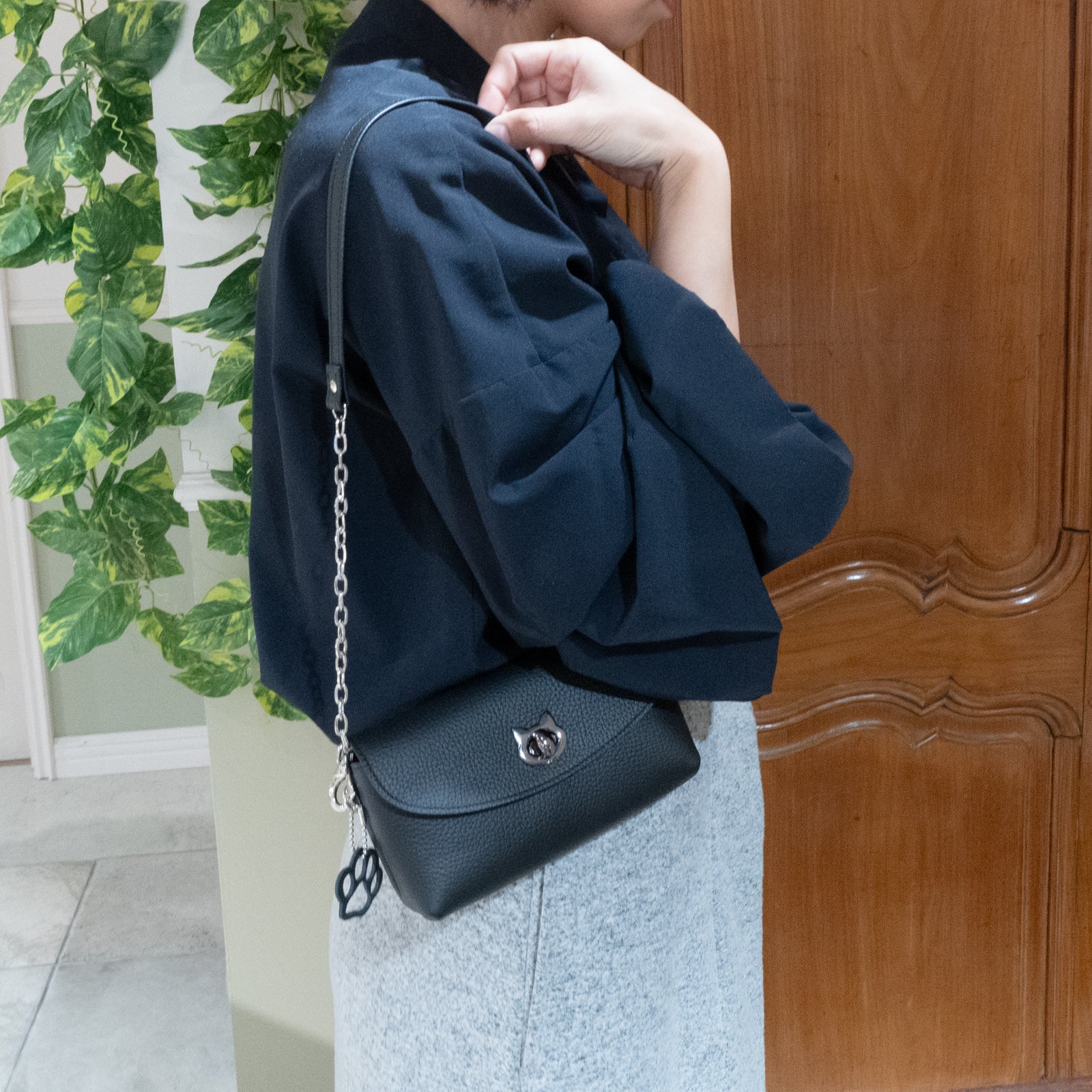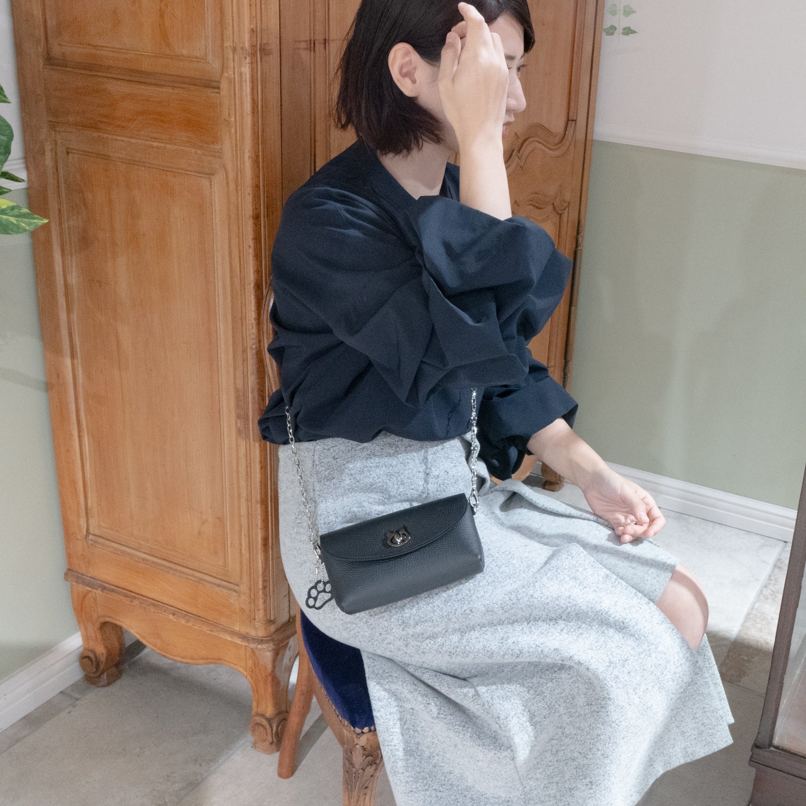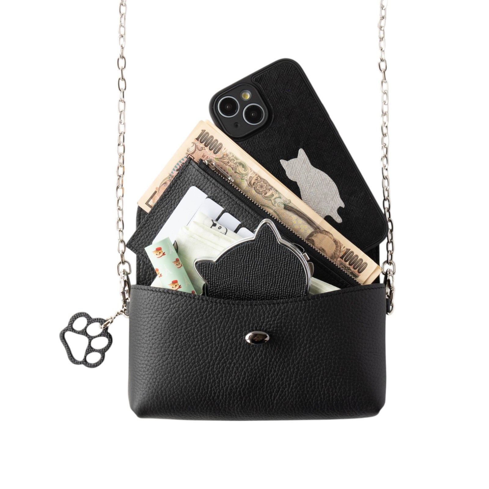 ねこ金具との相性もぴったりのミニサイズに肉球チャームなど、ねこモチーフが詰まった猫好きさんのためのポシェットです。