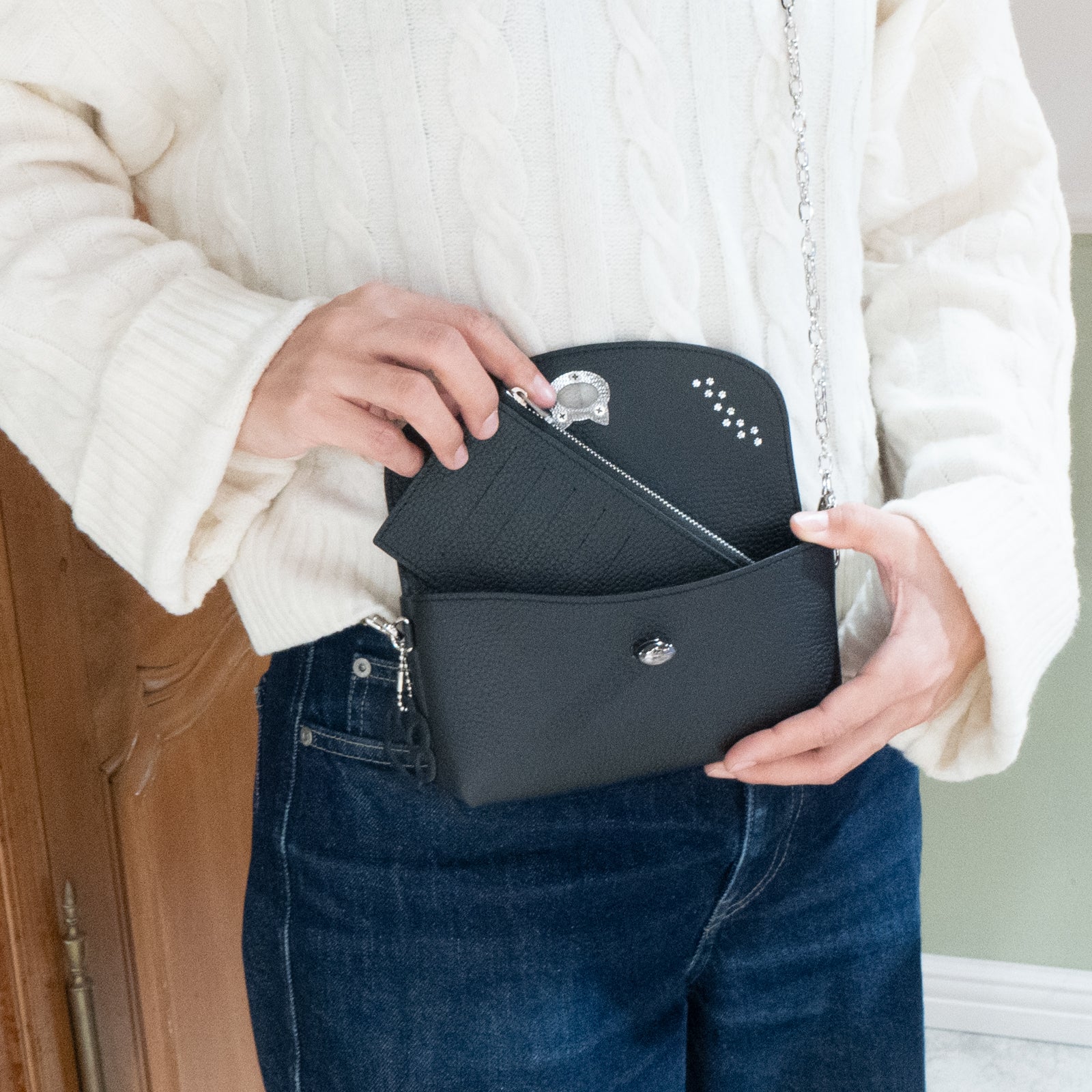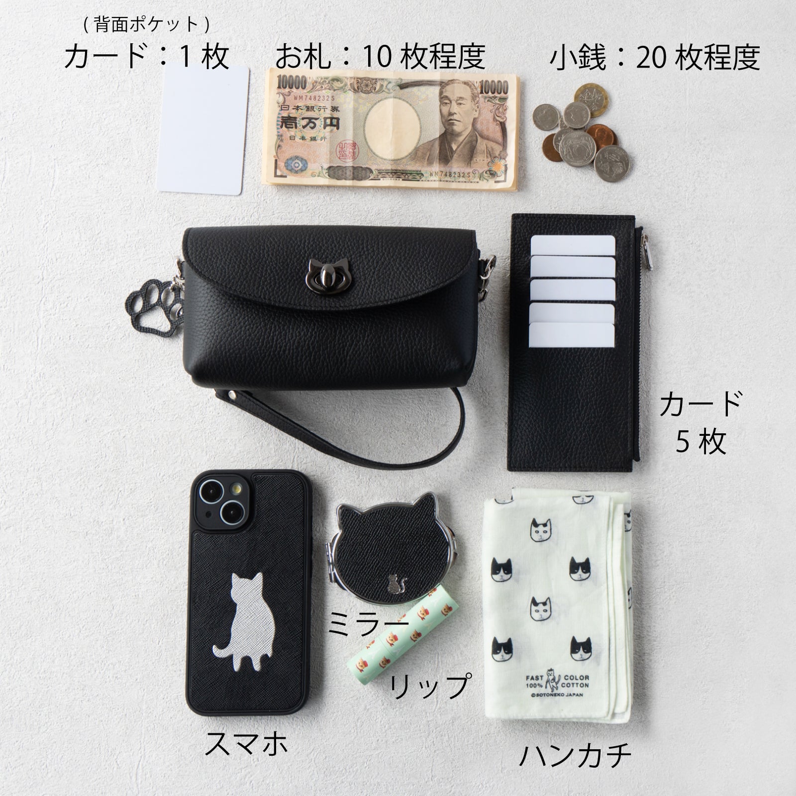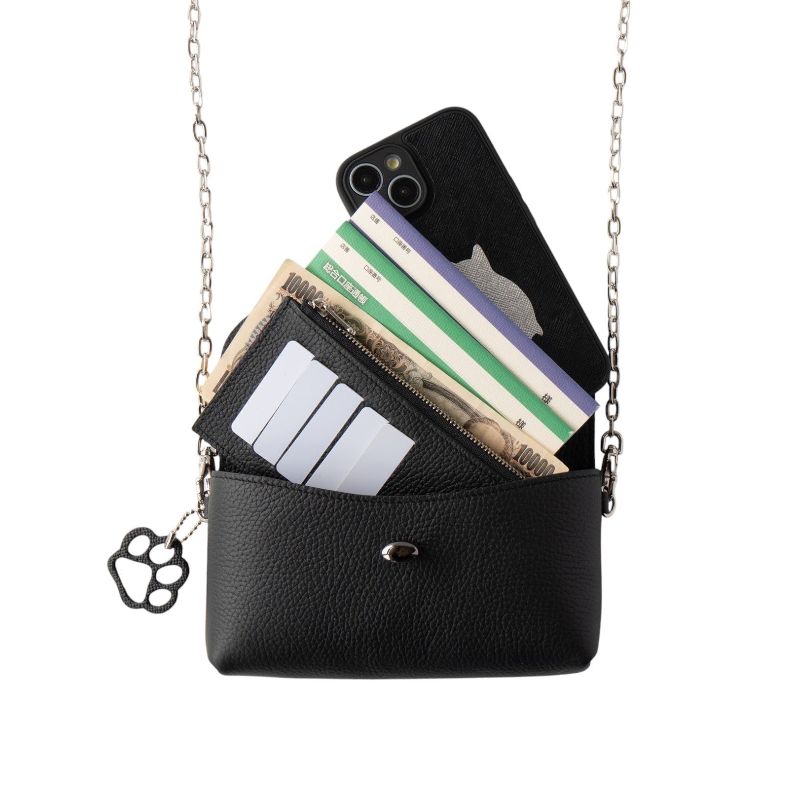 通帳2冊程度とお金、カード、スマホが一緒に入るので、ショルダーウォレットとしても活躍します。