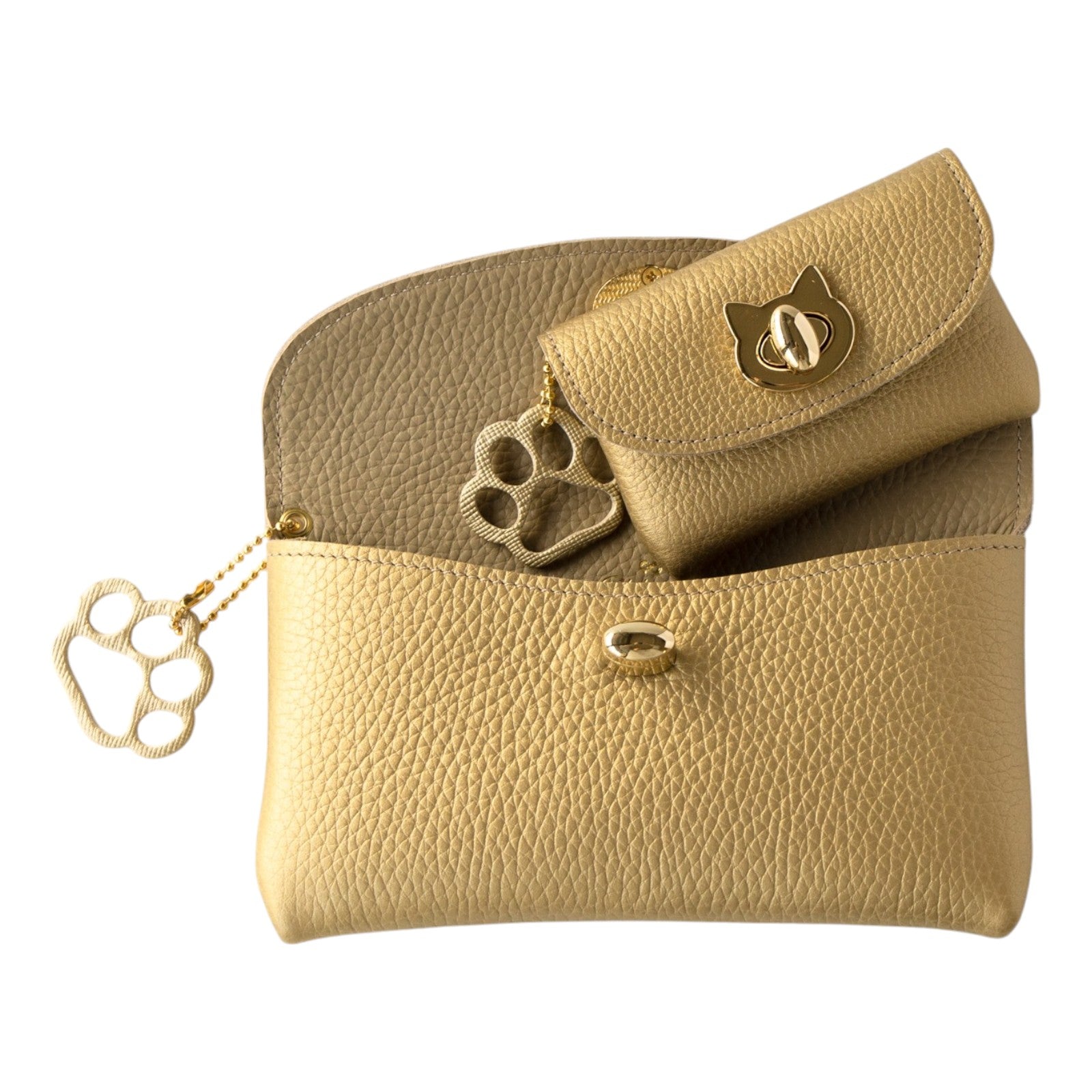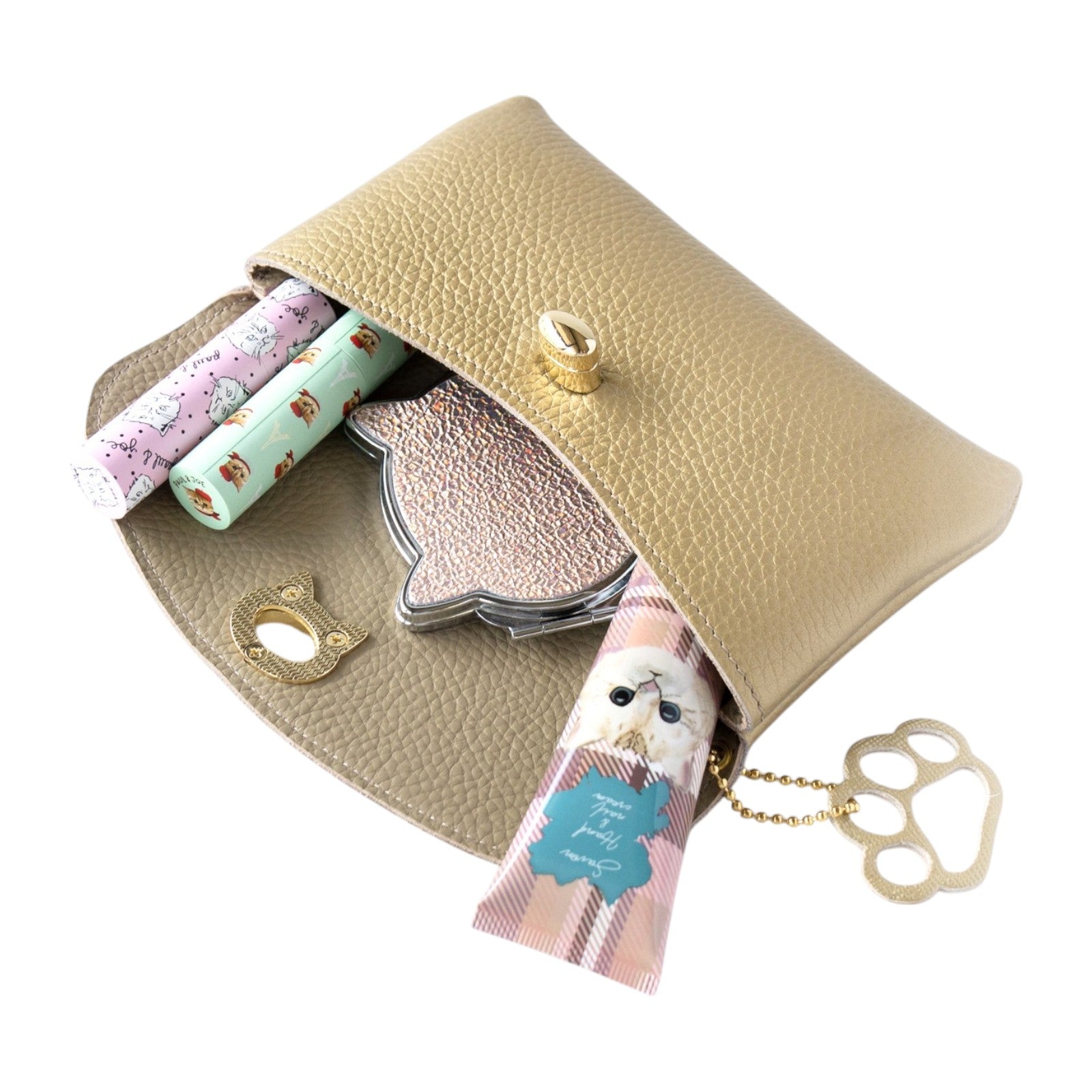 サイドに肉球チャームもついた猫好きさん専用ポーチです。