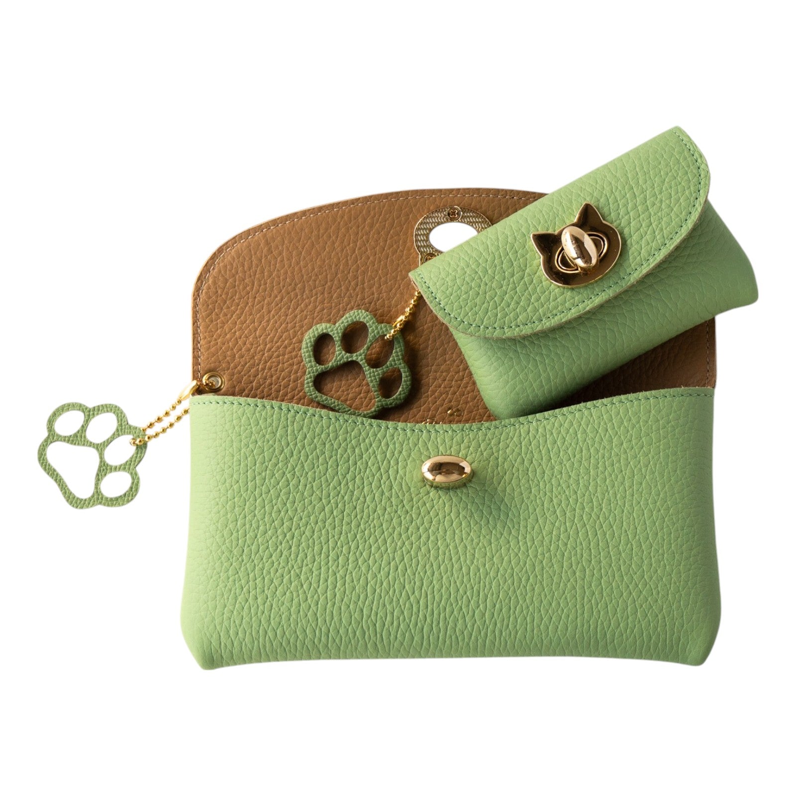 サイドに肉球チャームもついた猫好きさん専用ポーチです。