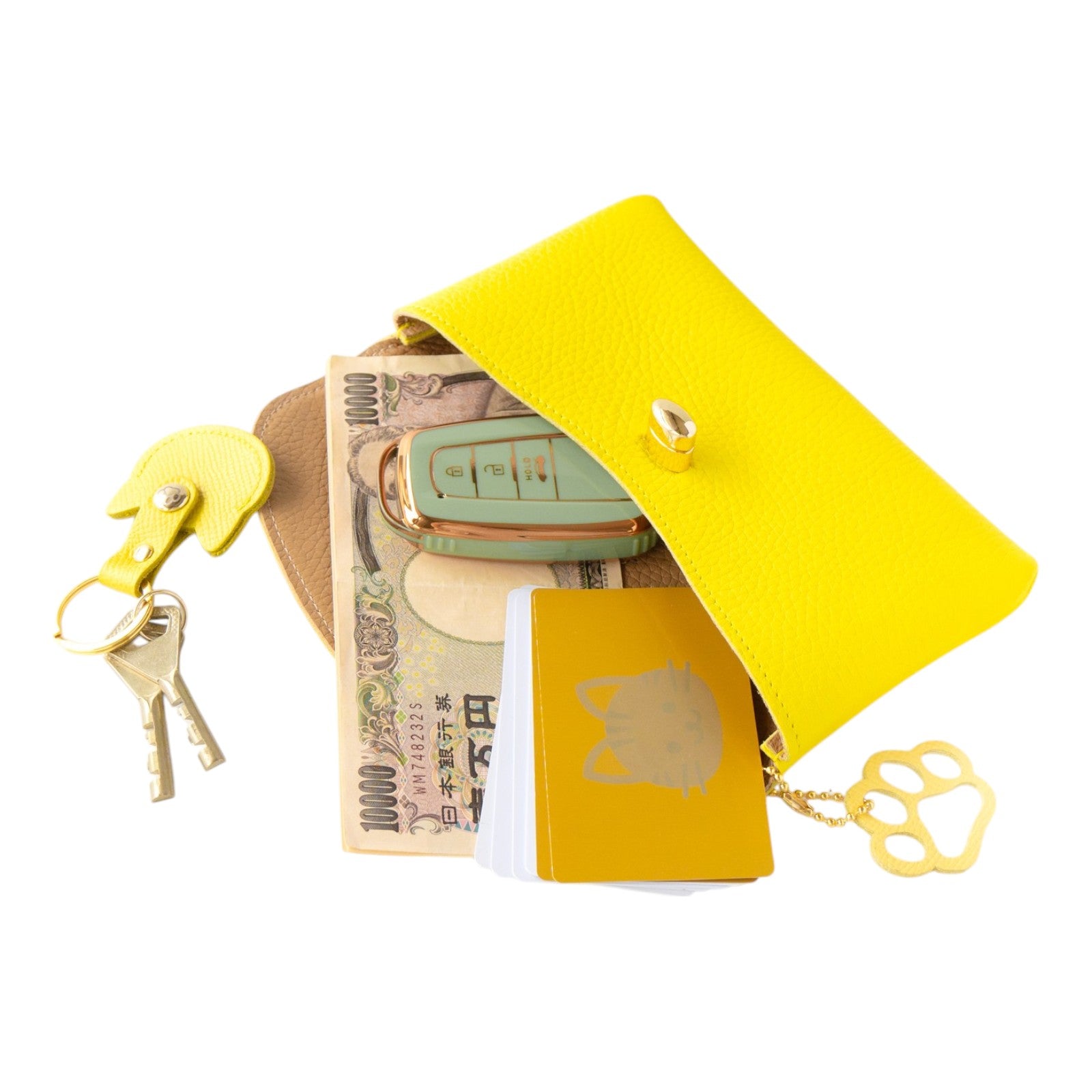 横幅はちょうど1万円札が折らずに入る大きさで、お金やカード、スマートキーなどが一緒に入り、車でのお出かけならこれ一つでさっと外出できます。