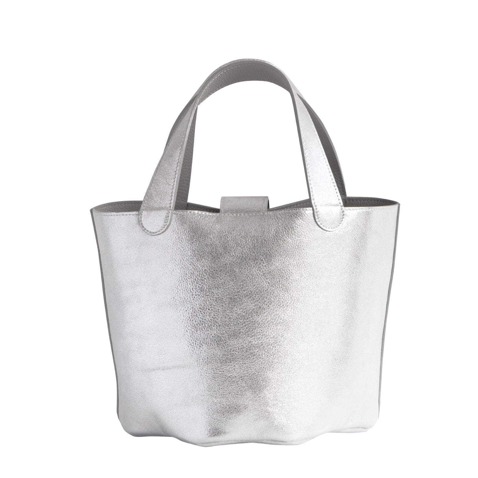 こちらのバッグに使用しているのは、羊革にラメ加工を施したレザーです。