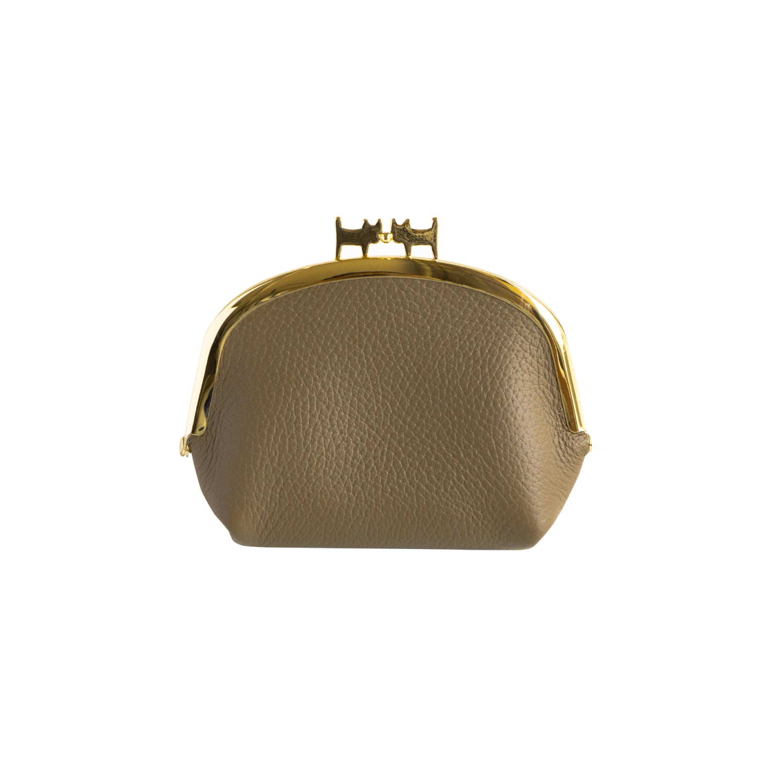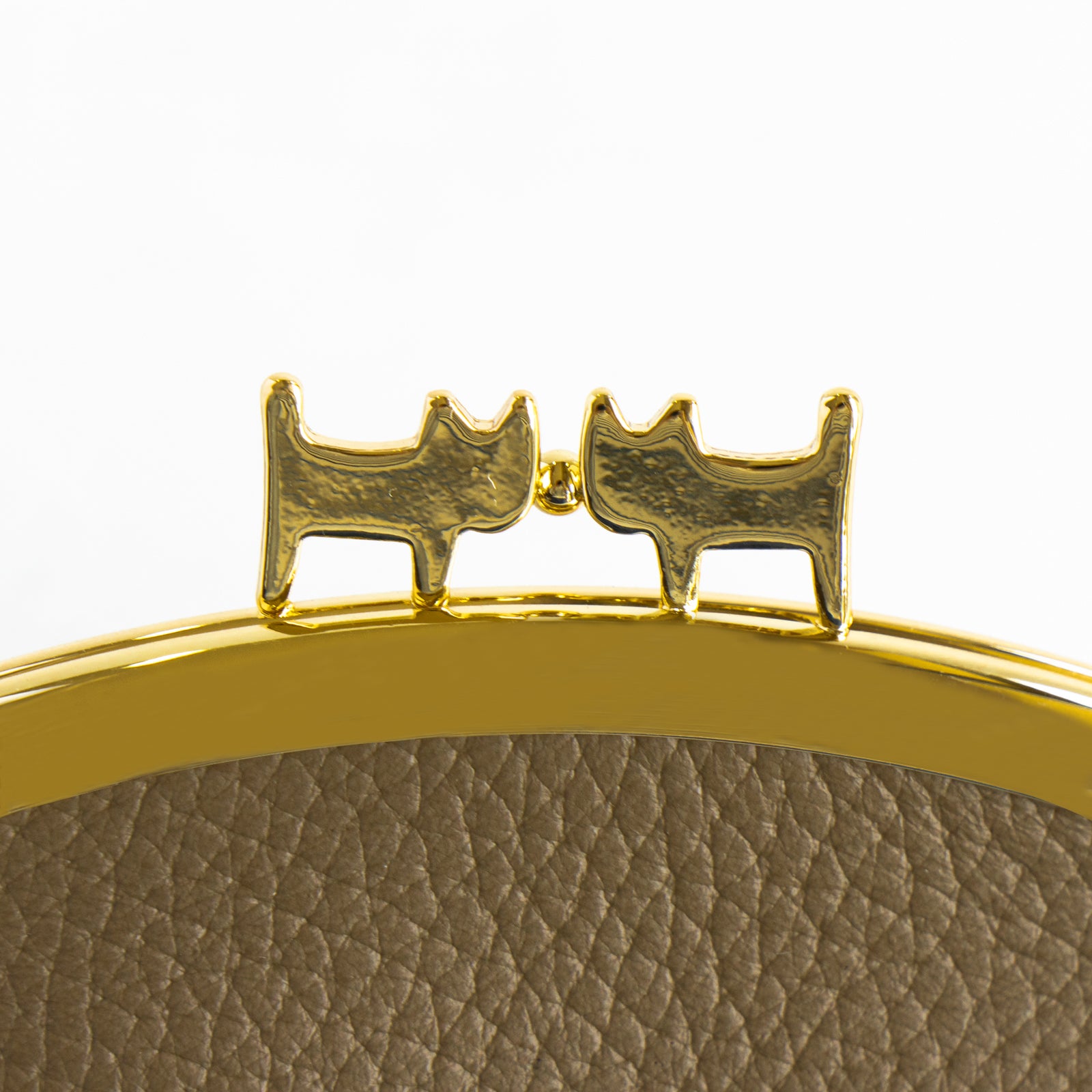 2匹の猫が向かい合った口金を使用した、可愛らしいまち付きのがまぐちポーチ。