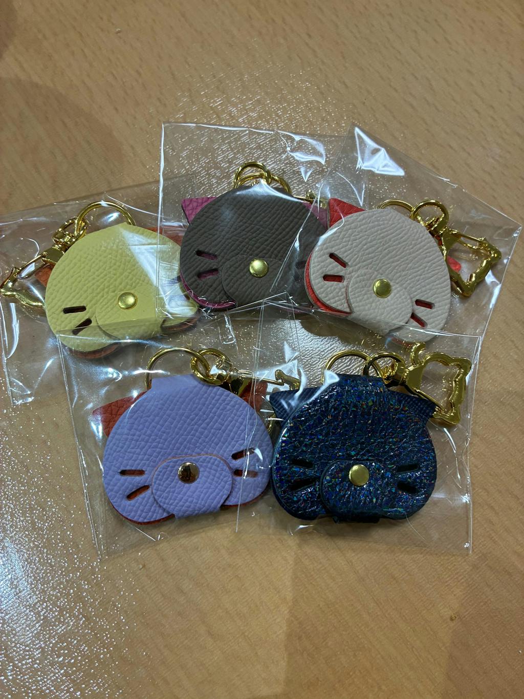 キーリング部分も2種類ねこ型の金具をランダムで使用!