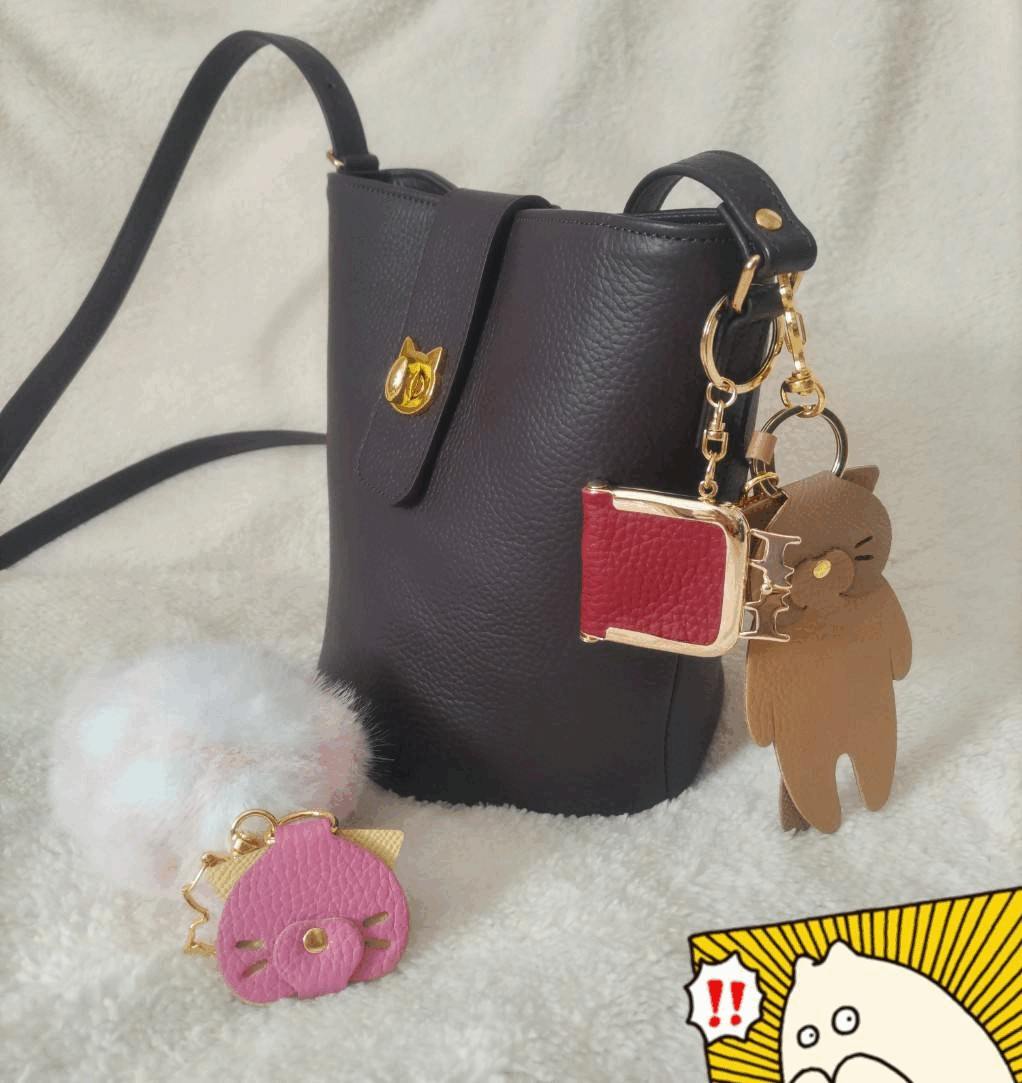 2匹の猫が向かい合った口金と、ちいさなプチサイズの組み合わせがキュートなキーホルダー。
