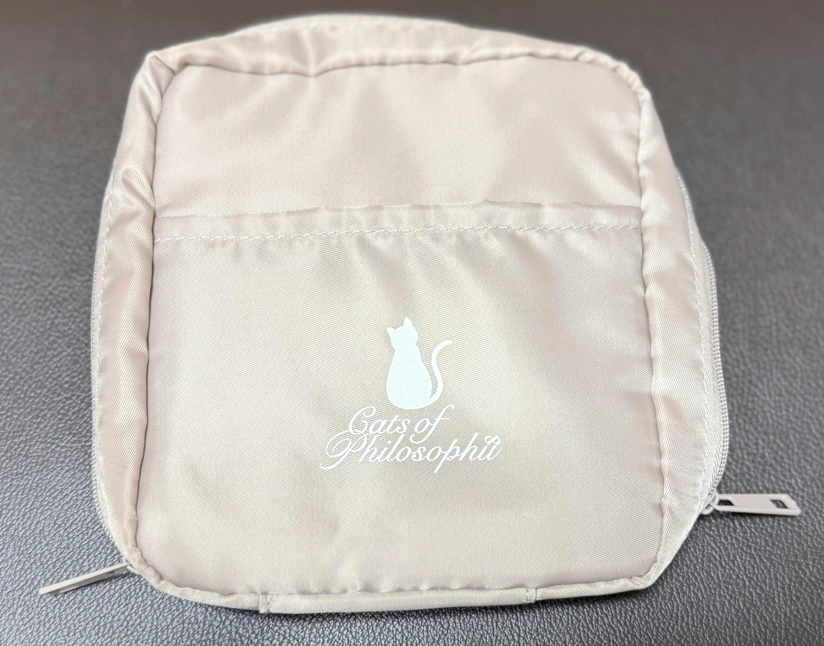 Cats of Philosophii」のロゴと肉球チャームがポイントのマチ付きポーチ。