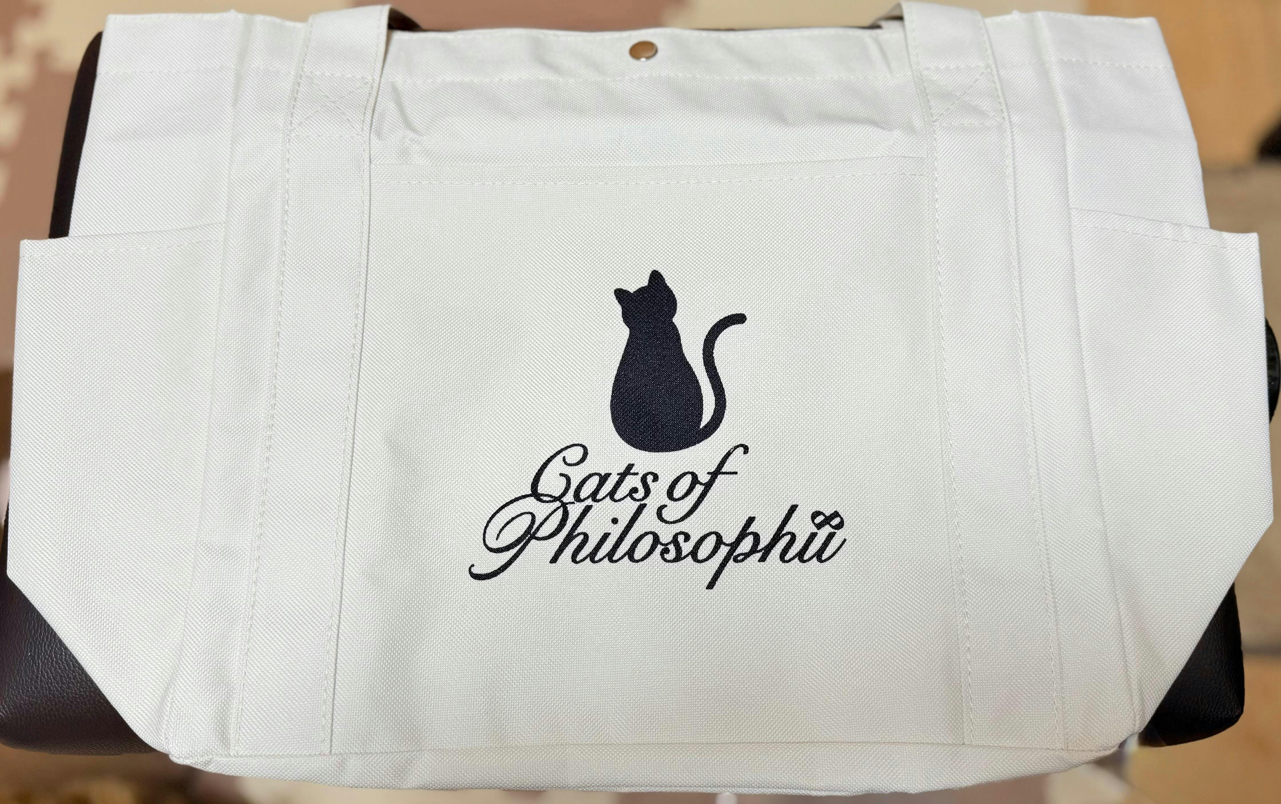 Cats of Philosophii」のロゴとBIG肉球チャームがポイントのシンプルなトートバッグ。
